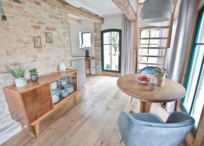 De 1-slaapkamer Scheune De Lutt - Kleine Scheune Ganz Gross Am Rande Der Schorfheide - Natur Pur ligt op afstand van 6 km van het Luftfahrtmuseum Finowfurt en nodigt gasten uit om te genieten van een terras. Gasten kunnen genieten van kanoën, wandelen en fietsen in de villa, gelegen op 3 km van Bernsteinsee.
